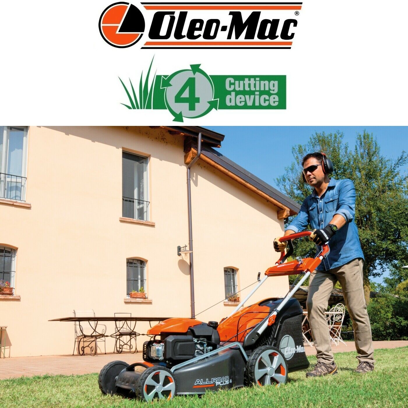 Rasaerba Oleo Mac in acciaio dotato di trazione ALLROAD e nuovo sistema di taglio PLUS 4.